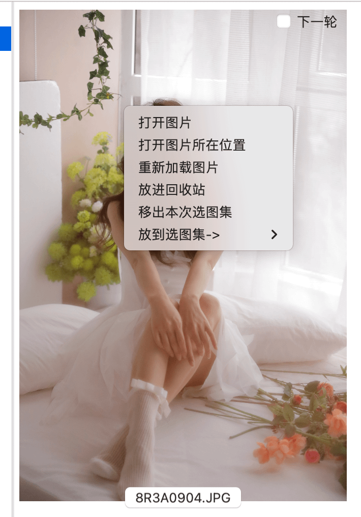 选中图片后,左边菜单会自动生成一个选图菜单. 括号里面是选中的图片等个数. 需要二次选图,可以点击选图,再次进行选图